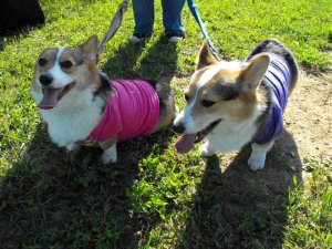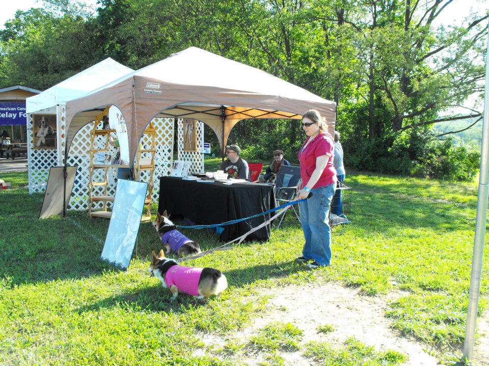 My husband and I attended the event to support awareness and treatment for Lyme disease by sponsoring a booth to promote Corgi Capers. We took both corgis to the book signing. This was the first time they were together in a public setting that included lots of dogs. The challenge with the corgis is that they play off of each other’s bad habits. Yoda is a barker. Any jingling of a dog tag, any echoing bark, any retracting leash sets him off. Leia feeds off that energy by biting on Yoda’s leash and tugging as hard as he can. They did relatively well, though, settling down quickly. By the end, they weren’t even barking at any of the dogs.