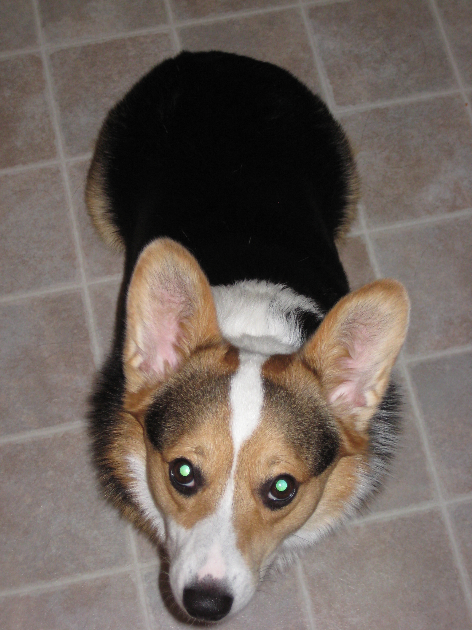 Soon, the corgis’ other person descends to the kitchen. The corgis both give him a quick howl, but he heads straight for