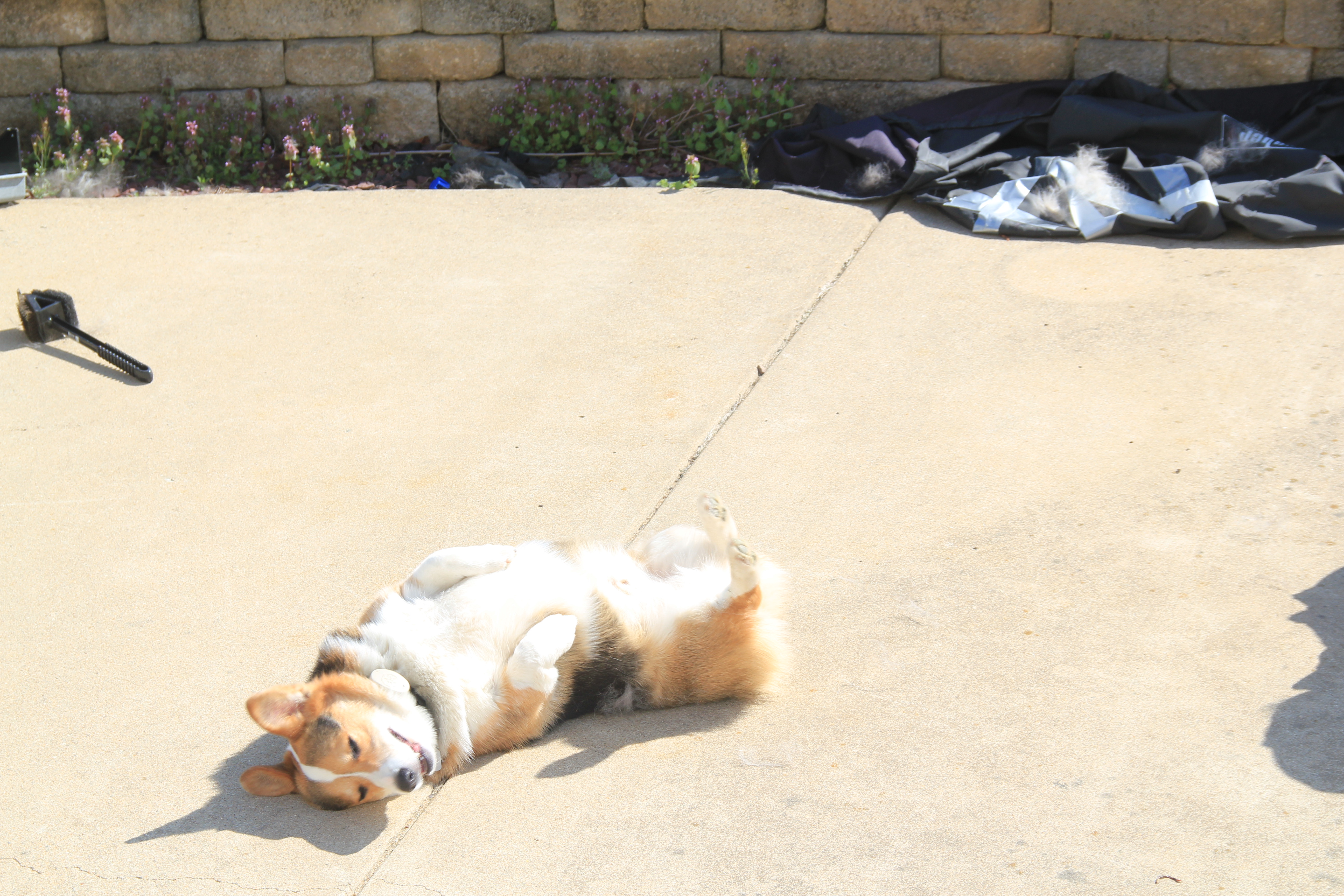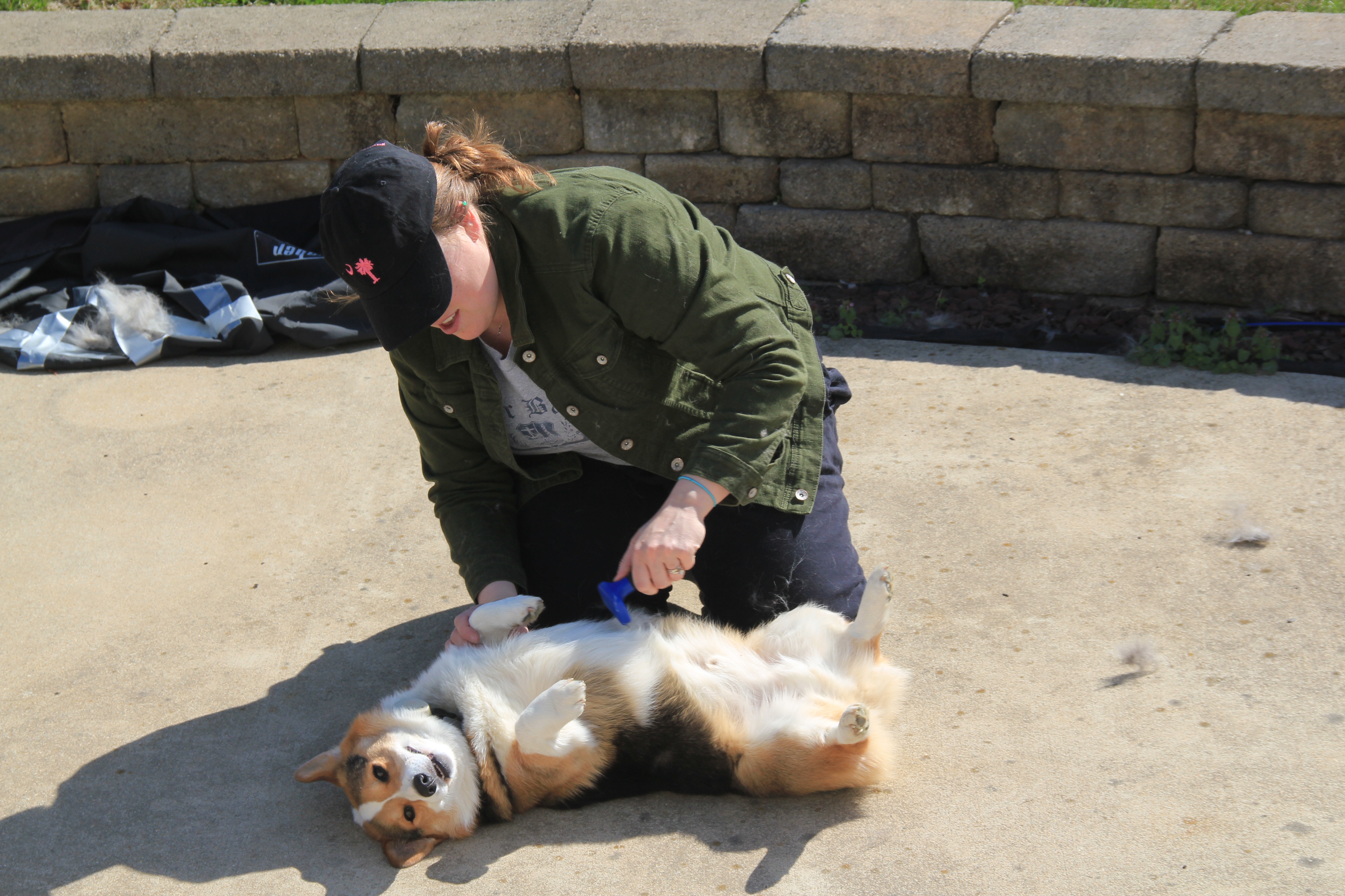 Speaking of grooming, springtime may lead to large furballs flying around the house like tumbleweed in the Wild West. That’s right, it’s corgi shedding season. Yes, I realize that EVERY DAY is corgi shedding season, but springtime is the absolute worst. The corgis will shed part of their soft white undercoats, the stuff that keeps them very warm during the winter. If you value your clothing, couches, and carpets, you must be proactive here. Grooming multiple times per week is a must.