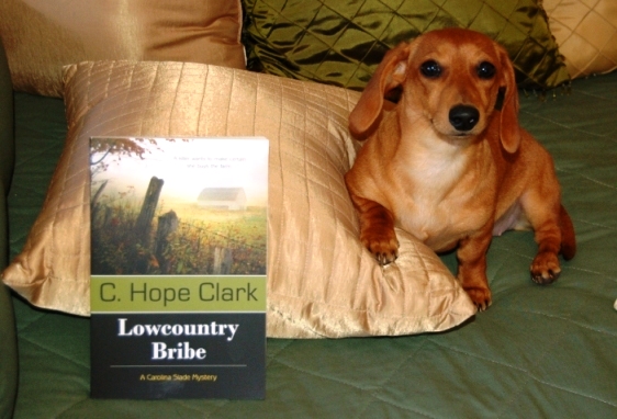 I’m excited to share this guest post by the amazing C. Hope Clark, author of the Carolina Slade Mystery series and owner of two adorable dogs. You can check out her links at the bottom of the post: