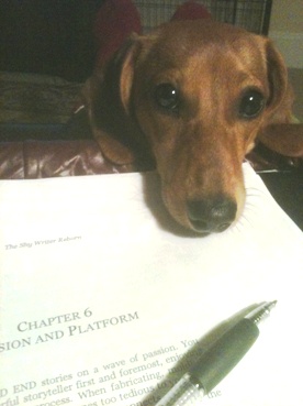 Writers often love having a pet around the keyboard. Dean Koontz has his golden retriever. Virginia Woolf had Pinka, a red cocker spaniel. Like my host Val Muller, Stephen King loves his corgis. John Steinbeck had a poodle he’d walk or drive around to remove writer’s block. And I’m proud to say that E. B. White, author of Charlotte’s Web and Stuart Little, adored his protégé Minnie the mini-dachshund, because I’m a dachshund lover, too.