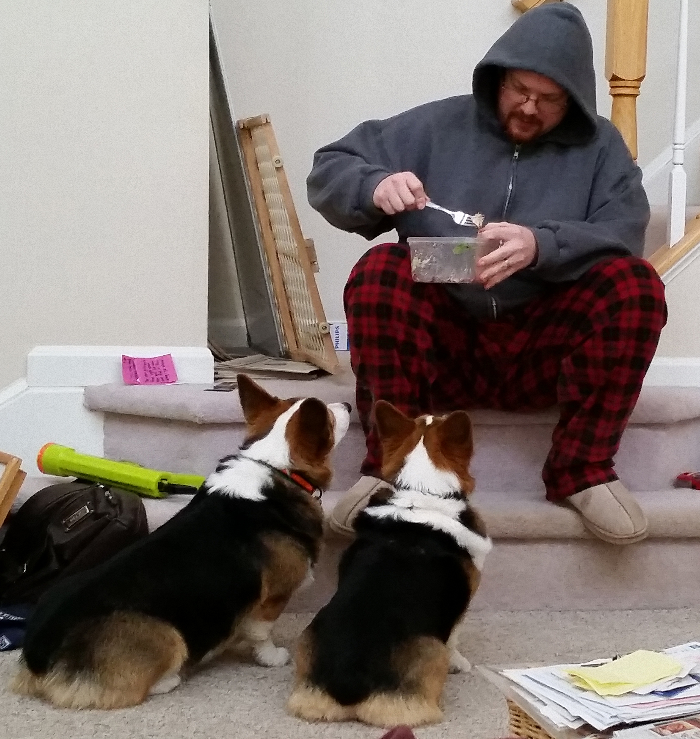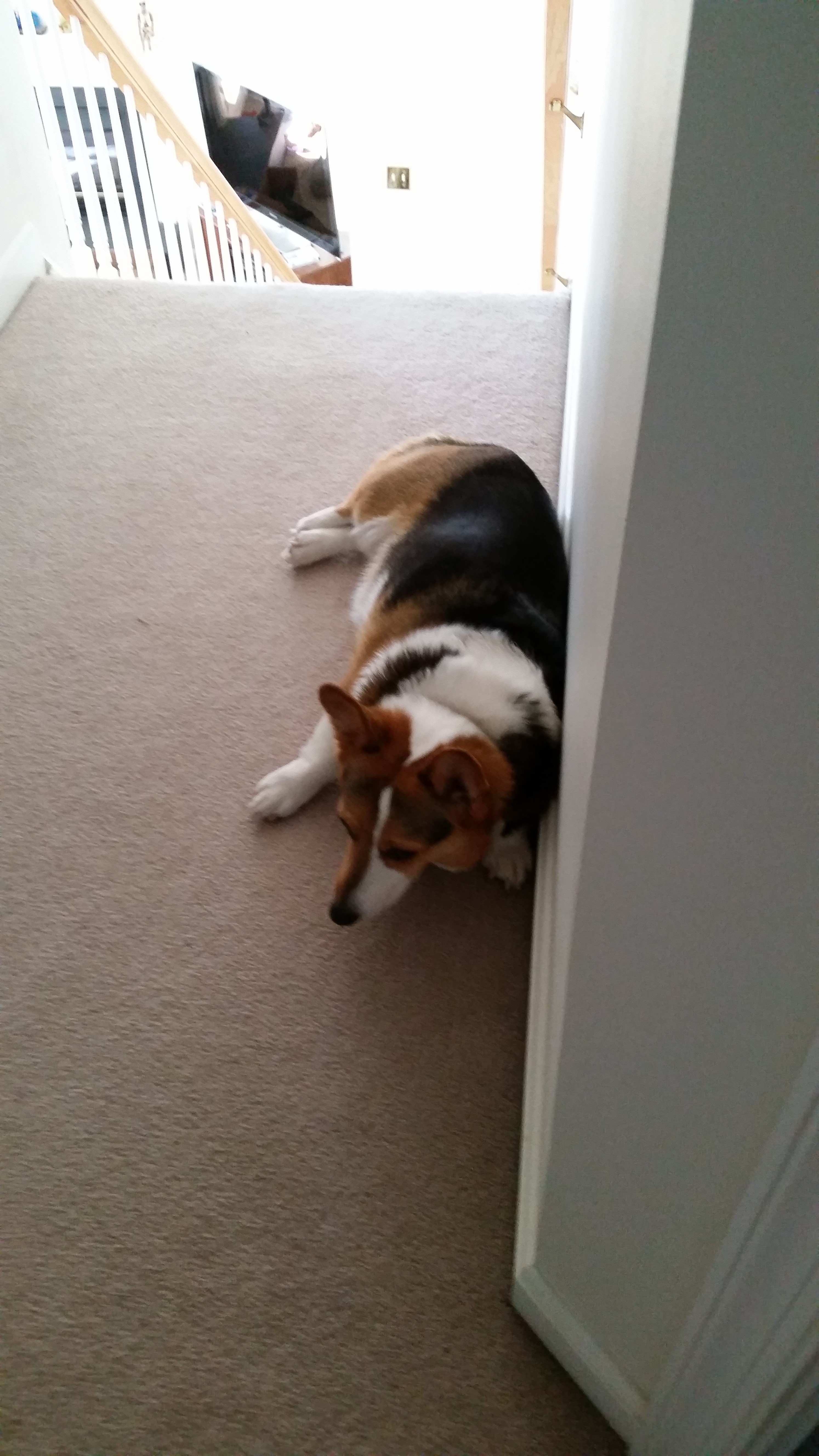 And there I was standing in the hallway. What could I do? I ran down the stairway, but it was too late. She saw that I was still on the wrong side of the baby gate. And so I was in trouble.