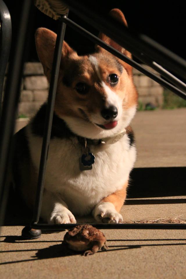 One of Leia’s favorite activities is to visit with the frogs and toads that frequent our patio once the sun goes down. Here’s a picture of her with the largest of her buddies: